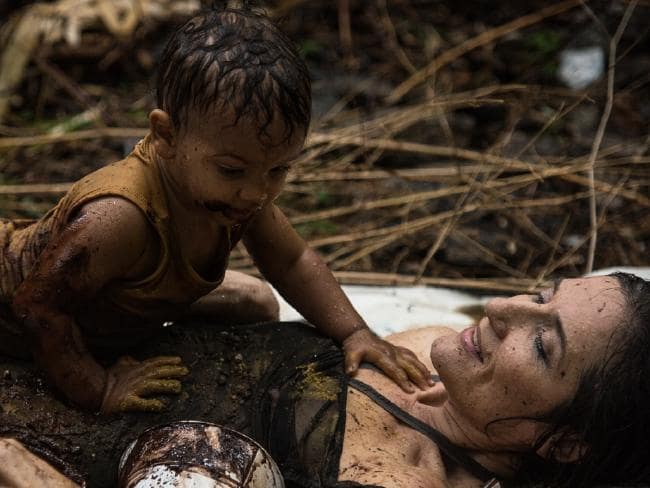 And there is nothing safe about Theresa’s art. She is one of the most visceral, edgy performance artists in the city, confronting her audience with uncomfortable visions, and putting her whole body into her art, from being doused in diesel or ink to crawling through mud along a canvas.
